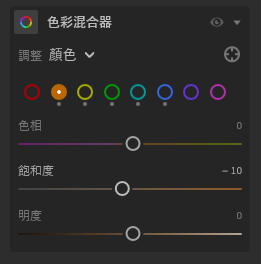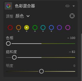 接下來將一些顏色作調整,減少一些其他顏色(藍色、綠色)的展現,把氛圍偏向於橘色、黃色,最後就大功告成囉!