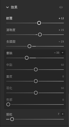 接下來分享各個數值的調整,也會因為每個人想要表達的感覺、原拍攝數值做一些調整。