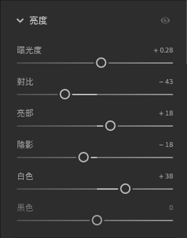 我們先做一些基本數值的調整,調整曝光、對比、色溫校正